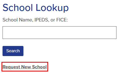 - Enter a full or partial school name, IPEDS ID, or FICE code into the search box.
