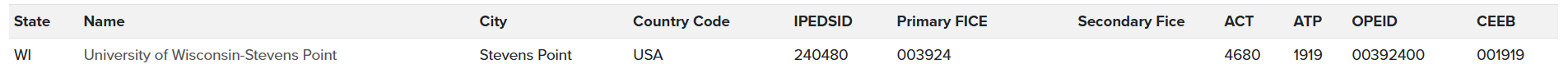 | CEEB | The College Entrance Examination Board (CEEB) institution identifier code. |