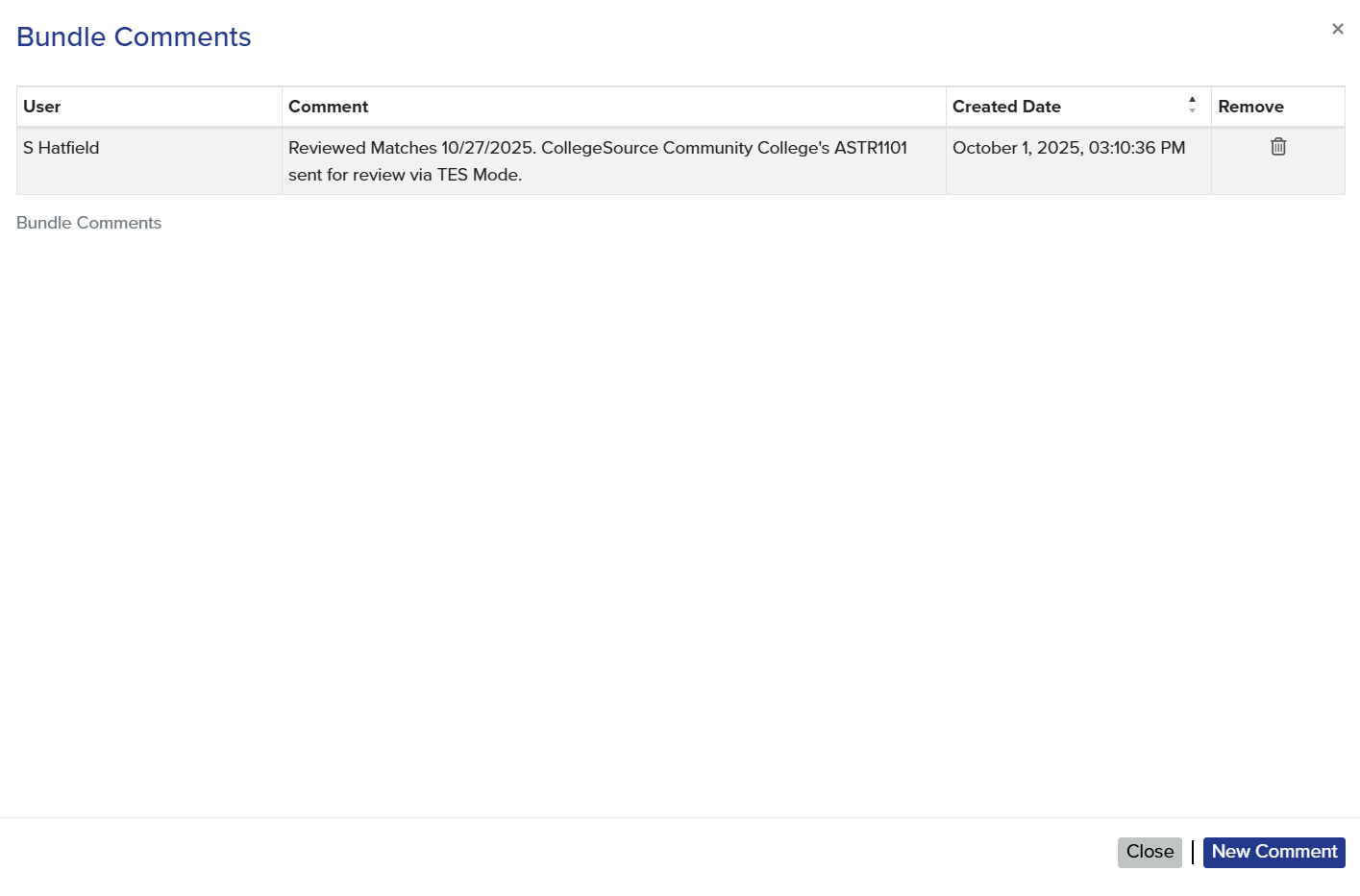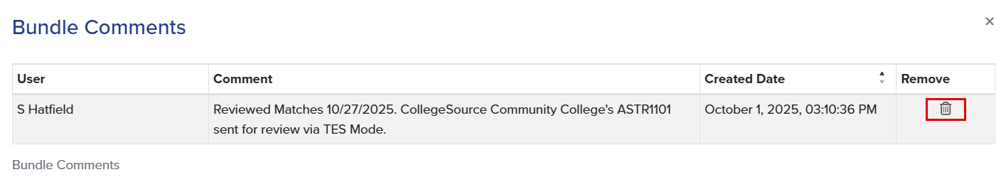 Course Bundles: View, Add, and Delete Transfer Bundle Comments