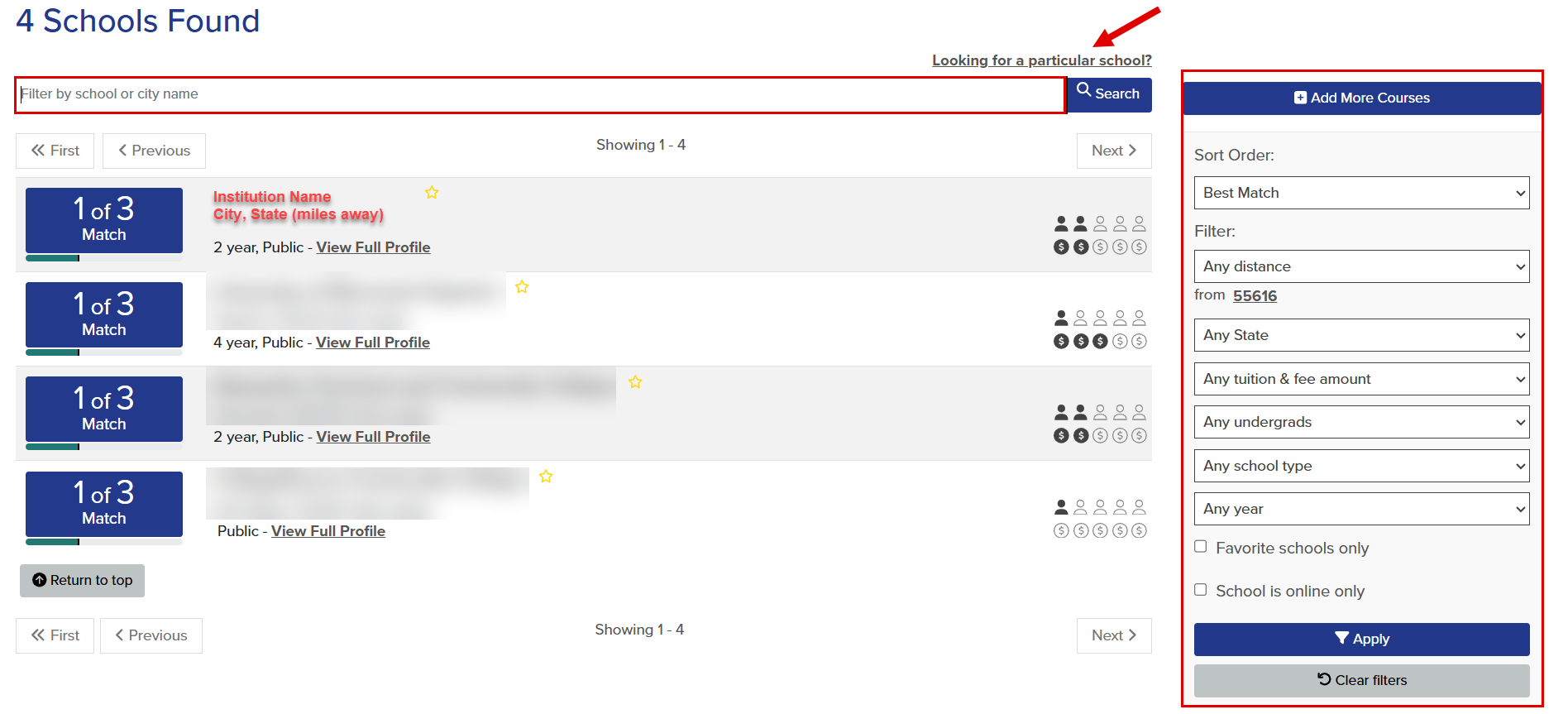 - Select the Looking for a particular school? hyperlink above the search bar.